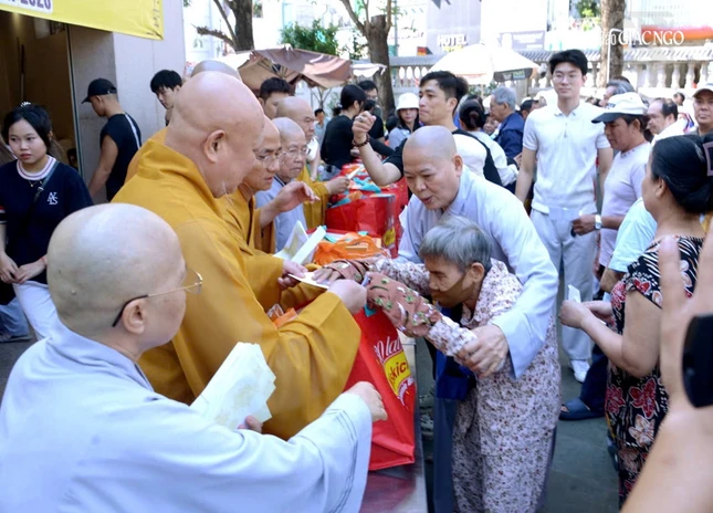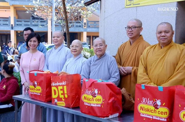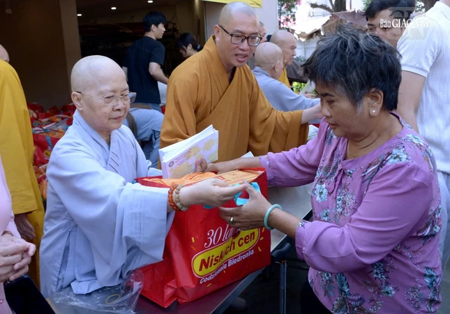 Theo đó, chư tôn đức Tăng Ni Ban Trị sự GHPGVN TP.HCM và Ban Từ thiện xã hội TP.HCM trao quà Tết đến 1.000 gia đình khó khăn tại P.Hòa Hương (Q.10 cũ) và 5 phường tại Q.Tân Bình cũ gồm: Tân Sơn Hòa, Tân Sơn Nhất, Tân Hòa, Bảy Hiền, Tân Bình và Tân Sơn nhằm chia sẻ khó khăn với bà con nhân Tết đến xuân về.