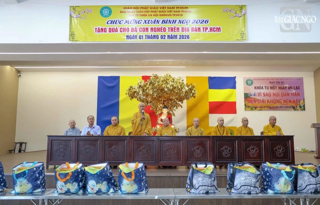 GNO - Bên thềm Xuân Bính Ngọ, sáng nay, 14-12-Ất Tỵ (1-2-2026), chư tôn đức Tăng Ni Ban Trị sự GHPGVN TP.HCM và Ban Từ thiện xã hội TP.HCM kết hợp với lãnh đạo P.Hòa Hưng, P.Tân Sơn Hòa (TP.HCM) tổ chức trao quà Tết đến bà con nghèo.
