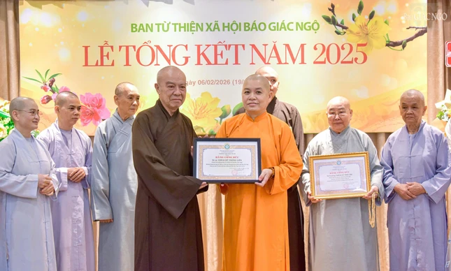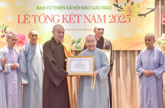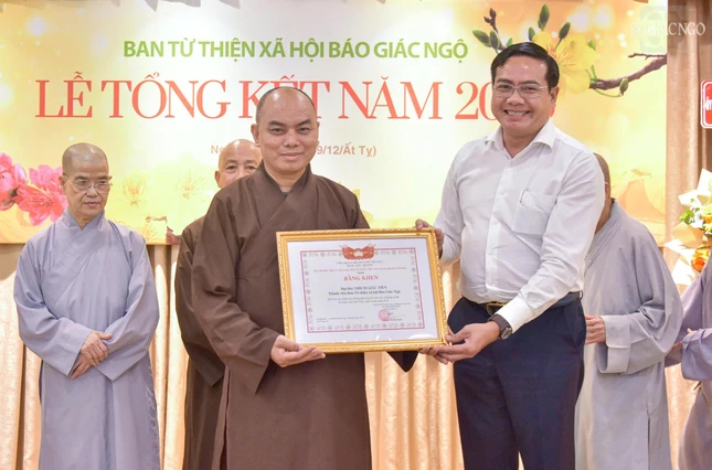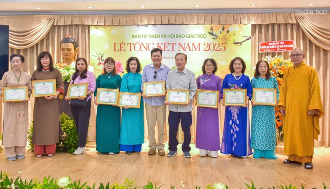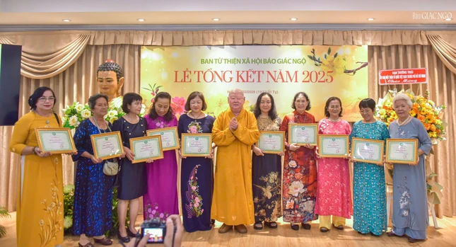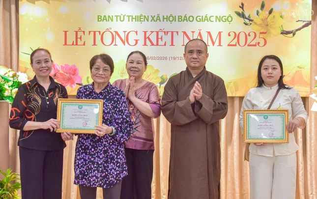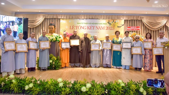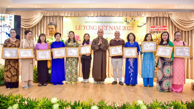 Ghi nhận những đóng góp của thành viên Ban Từ thiện xã hội Báo Giác Ngộ, Hội đồng Trị sự GHPGVN tặng Bằng tuyên dương công đức cho tập thể Ban Từ thiện xã hội Báo Giác Ngộ; Ban Thường trực Ban Trị sự GHPGVN TP.HCM tặng Bằng tuyên dương công đức và công đức đến các tập thể, cá nhân có nhiều đóng góp cho hoạt động từ thiện xã hội năm 2025; Ủy ban MTTQVN TP.HCM tặng Bằng khen đến các tập thể và cá nhân; Ban Biên tập Báo Giác Ngộ tặng Bằng công đức 2 tập thể, 70 cá nhân; Ban Từ thiện xã hội Báo Giác Ngộ tặng nhiều Bằng công đức đến tập thể và các cá nhân tích cực hoạt động từ thiện.