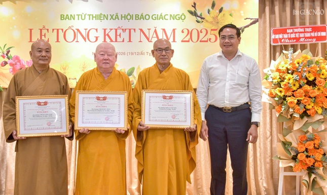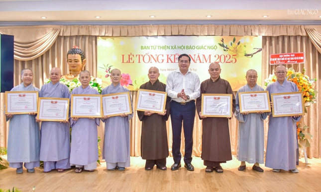 Ghi nhận những đóng góp của thành viên Ban Từ thiện xã hội Báo Giác Ngộ, Hội đồng Trị sự GHPGVN tặng Bằng tuyên dương công đức cho tập thể Ban Từ thiện xã hội Báo Giáo hội; Ban Thường trực Ban Trị sự GHPGVN TP.HCM tặng Bằng tuyên dương công đức và công đức đến các tập thể, cá nhân có nhiều đóng góp cho hoạt động từ thiện xã hội năm 2025; Ủy ban MTTQVN TP.HCM tặng Bằng khen đến các tập thể và cá nhân; Ban Biên tập Báo Giác Ngộ tặng Bằng công đức 2 tập thể, 70 cá nhân; Ban Từ thiện xã hội Báo Giác Ngộ tặng nhiều Bằng công đức đến tập thể và các cá nhân tích cực hoạt động, đóng góp trong công tác từ thiện năm 2024.