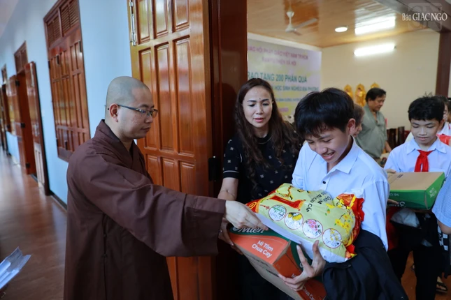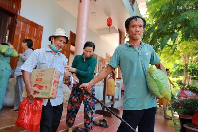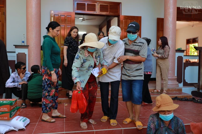 Buổi tặng quà tổ chức tại chùa Tường Vân (TT.Bình Dương, H.Phù Mỹ, tỉnh Bình Định) trưa ngày 30-9 |