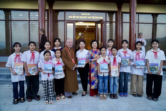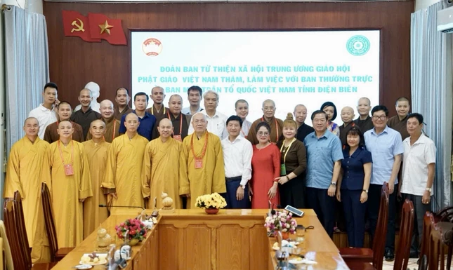 Tháp tùng đoàn còn có Thượng tọa Thích Đức Thiện, Phó Chủ tịch kiêm Tổng Thư ký Hội đồng Trị sự, Trưởng ban Trị sự GHPGVN tỉnh Điện Biên; Thượng tọa Thích Minh Nghiêm, Ni trưởng Thích Đàm Khoa, đồng Ủy viên Thường trực Hội đồng Trị sự, Phó Thường trực Ban Từ thiện xã hội T.Ư; Đại đức Thích Quảng Tiến, Ủy viên Hội đồng Trị sự, Phó Thường trực Ban Từ thiện xã hội T.Ư; Thượng tọa Thích Tuệ Hải, Đại đức Thích Thiện Xuân, Ni trưởng Thích Đàm Lan, Ni sư Thích nữ Huệ Thiện, đồng Phó ban Từ thiện xã hội T.Ư; Đại đức Thích Trí Huệ, Chánh Thư ký Ban Từ thiện xã hội T.Ư, cùng Tăng Ni, Phật tử thành viên đoàn.