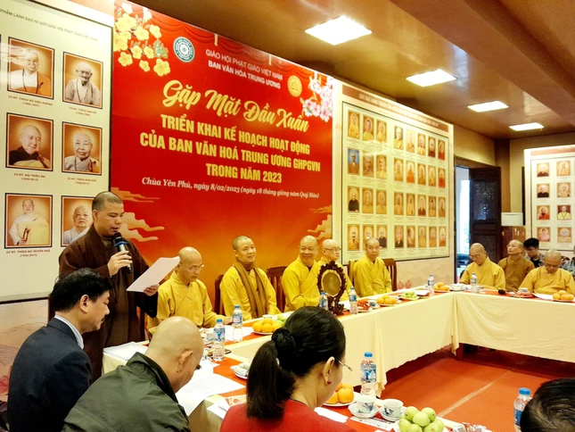 Sau lời chúc năm mới đến mọi người, Hòa thượng Thích Thọ Lạc cho biết nội dung cuộc gặp mặt đầu năm nhằm chuẩn bị công tác nhân sự của Ban Văn hóa T.Ư nhiệm kỳ mới, trong đó xây dựng 9 phân ban chính (Kiến trúc - Kiến thiết biểu tượng văn hóa Phật giáo, Di sản, Bảo trợ - Từ thiện, Tổ chức sự kiện, Nghệ thuật Phật giáo, Mỹ thuật - Pháp phục, Hợp tác và Phát triển văn hóa Phật giáo, Sáng tác văn hóa nghệ thuật - Ngôn ngữ văn hóa Phật giáo, Công nghệ - Thông tin) và khối văn phòng điều hành hoạt động Phật sự.