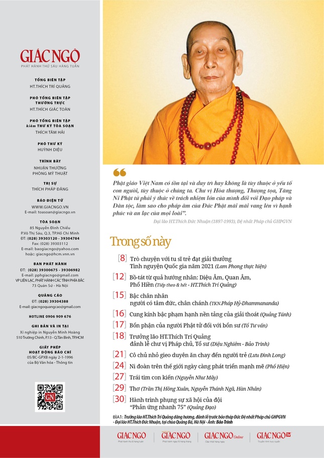 - Mục Điểm nhìn, có bài "Trò chuyện với tu sĩ trẻ đạt giải thưởng Tình nguyện Quốc gia năm 2021" của tác giả Lam Phong.