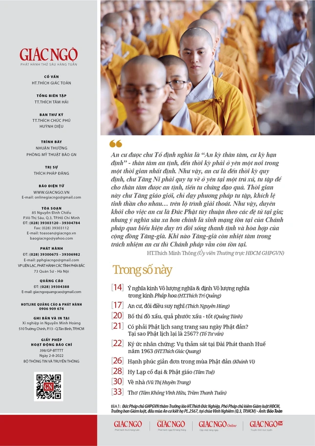 Mời bạn đọc cùng theo dõi bài viết: "An cư đôi điều suy nghĩ" của tác giả Thích Nguyên Hùng đăng trên mục Phật học của Báo Giác Ngộ số 1205 ra ngày 9-6-2023.