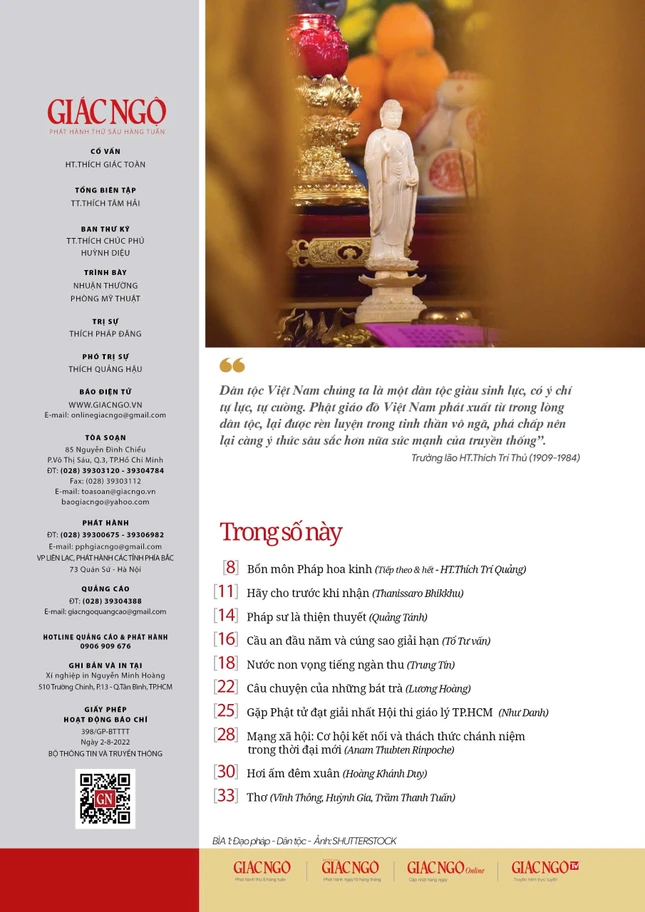 - Các chuyên mục khác: "Mạng xã hội: Cơ hội kết nối và thách thức chánh niệm trong thời đại mới" (Tâm Tuệ dịch); "Hơi ấm đêm xuân" (Truyện ngắn Hoàng Khánh Duy); Thơ của Vĩnh Thông, Huỳnh Gia, Trầm Thanh Tuấn...