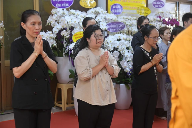 Trước Giác linh đường, đoàn đã thành kính dâng hương tưởng niệm vị giáo phẩm giới đức trang nghiêm, bậc tòng lâm thạch trụ của GHPGVN, nguyện noi gương giới đức của Hòa thượng trên bước đường tu học và hành đạo.