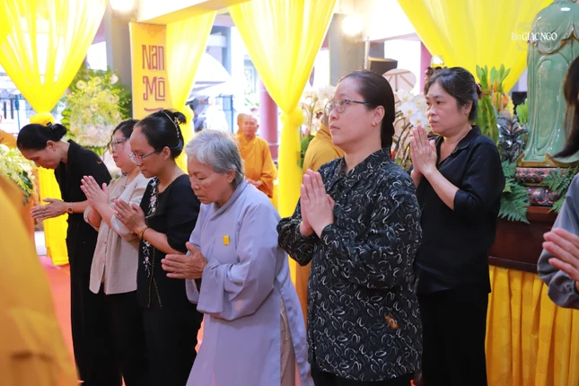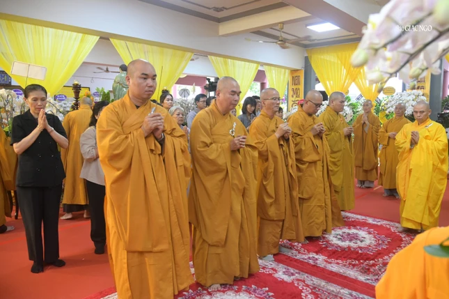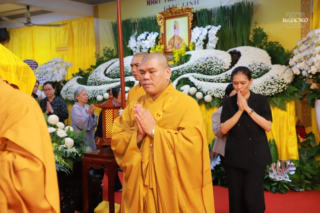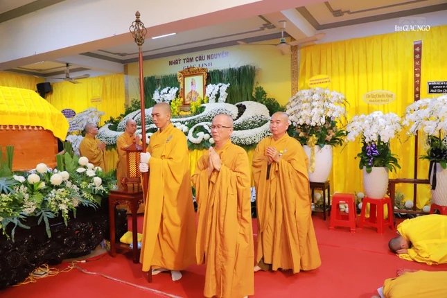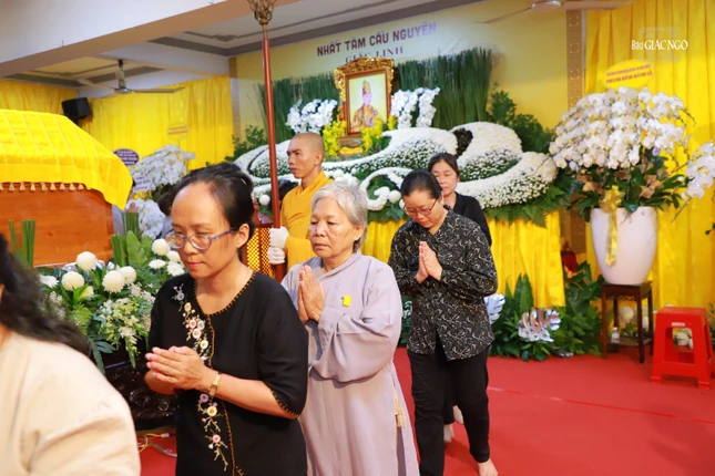 Sau đó, chư tôn đức, Phật tử đã thọ tâm tang, hữu nhiễu kim quan. Thượng tọa Thích Chúc Phú đại diện phái đoàn ghi sổ tang lưu niệm, phân ưu cùng Ban Tổ chức Lễ tang, sơn môn pháp phái và môn đồ pháp quyến.