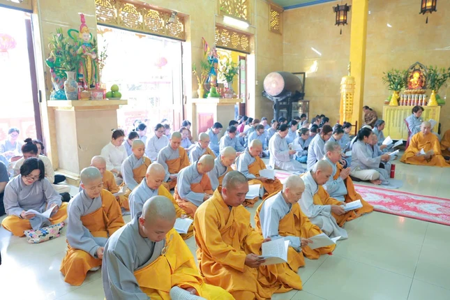 Không khí thiêng liêng trong thời khóa tụng niệm, lan tỏa năng lượng an lành giữa đời sống hiện đại |