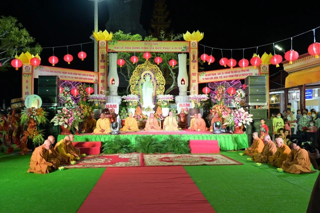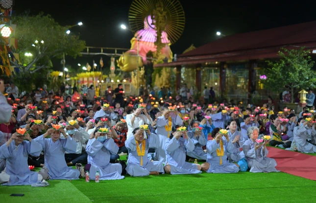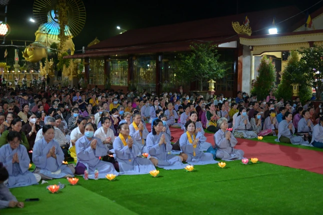 Trong không khí trang nghiêm của buổi lễ, chư tôn đức chư tôn đức Tăng đã hướng dẫn hơn 500 Phật tử chắp tay hướng tâm về tôn tượng Đức Phật A Di Đà thực hành nghi thức thắp nến và đồng hướng về hạnh nguyện của Đức Phật A Di Đà với niềm kính ngưỡng, tri ân công đức của Đấng Cha Lành vì chúng sanh đã phát lời thệ nguyện rộng lớn ra vào Cõi Ta-bà độ sanh hết muôn loài.