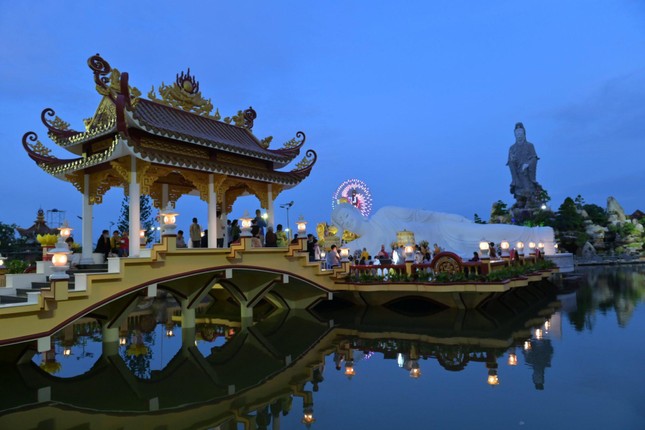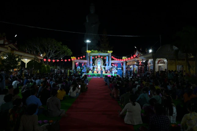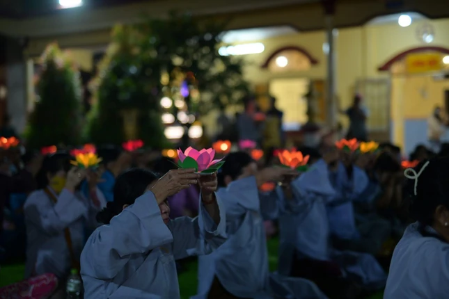 GNO - Tối 9-12 (16-11-Nhâm Dần), chùa Vạn Phước, huyện Bình Đại tổ chức lễ hoa đăng khánh đản ngày vía Đức Phật A Di Đà với hơn 500 Phật tử tham dự.