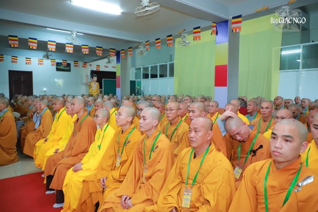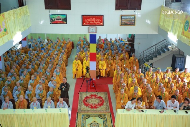 Đại đức Thích Trung Hòa, Phó Thư ký kiêm Chánh Văn phòng Ban Trị sự tỉnh báo cáo tiến trình tổ chức Đại giới đàn Thiện Duyên, các đàn giới được thành tựu theo kế hoạch của Ban Tổ chức.