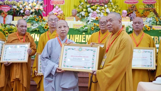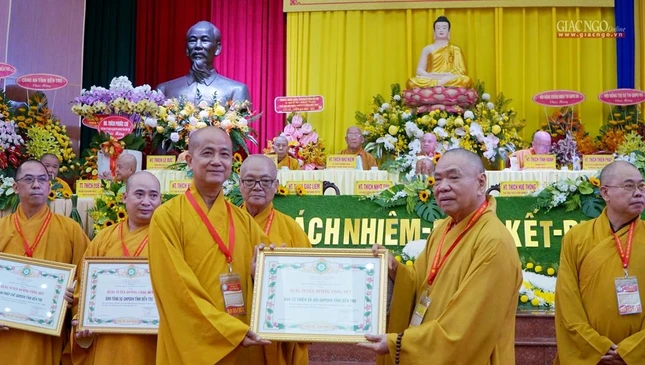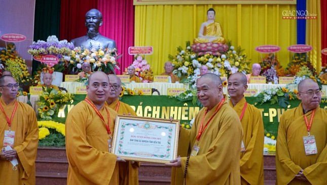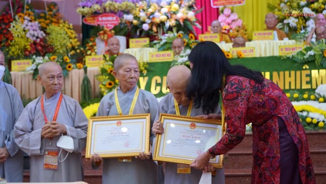 Dịp này, Trung ương GHPGVN tặng Bằng tuyên dương công đức cho 7 tập thể Ban Trị sự và 33 cá nhân; UBND tỉnh tặng Bằng khen đến 1 tập thể, 9 cá nhân; Ủy ban MTTQVN tỉnh tặng Bằng khen 1 tập thể và 9 cá nhân.