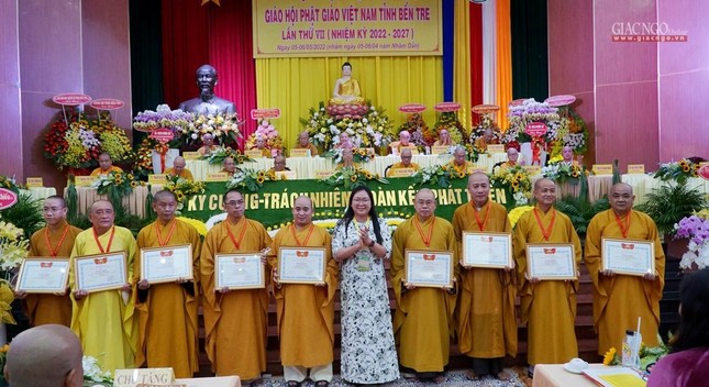 Phật giáo tỉnh Bến Tre có 9 huyện, thị, thành với 267 tự viện, trong đó có 249 tự viện Bắc tông, 15 tịnh xá, 3 tịnh thất. Trong khóa VI (2017-2022), Ban Trị sự GHPGVN tỉnh Bến Tre đã tổ chức 3 đại giới đàn mang tôn hiệu Từ Phong, Hiển Pháp và Niệm Nghĩa với tổng 1.375 vị giới tử. Trường Trung cấp Phật học tỉnh duy trì 12 năm qua, đã đào tạo được 3 khóa Tăng Ni sinh tốt nghiệp. Trong nhiệm kỳ qua, Phật giáo tỉnh đã thực hiện công tác từ thiện, an sinh xã hội với tổng trị giá trên 321 tỷ đồng.