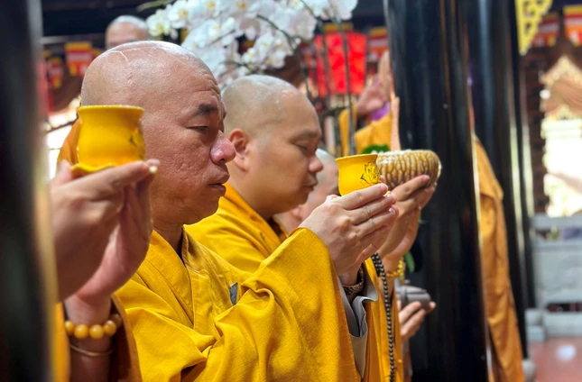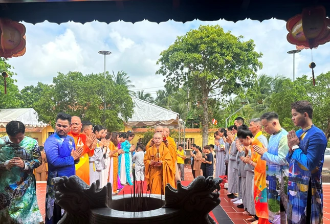 Hòa thượng Thích Lệ Trang, Trưởng ban Nghi lễ T.Ư, Trưởng ban Trị sự GHPGVN TP.HCM quang lâm cử hành lễ sái tịnh già-lam, thỉnh Phật an vị và khai kinh; Tham dự cầu nguyện còn có chư tôn đức Tăng Ni Ban Thường trực Ban Trị sự GHPGVN TP.HCM, tỉnh Bến Tre và các tỉnh lân cận.