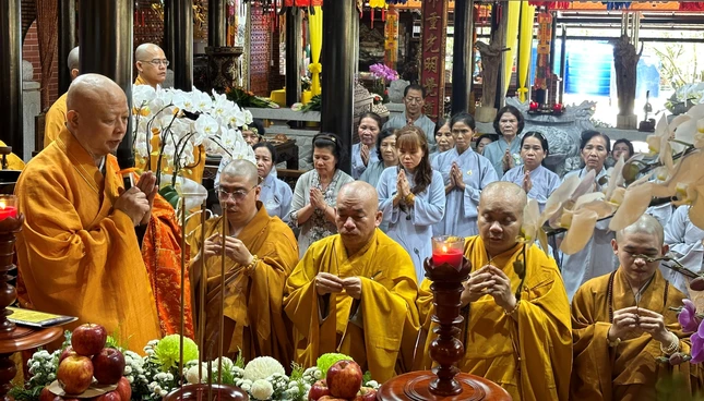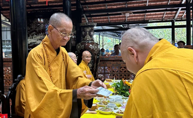 Dịp này, Thượng tọa cùng chư Tăng và Phật tử đã trang nghiêm tổ chức lễ tưởng niệm 10 năm Hòa thượng Thích Nhật Quang viên tịch, truy tiến chư hương linh, chẩn tế cầu nguyện âm siêu dương thái nhân dịp tiết tháng Bảy - Vu lan thắng hội.