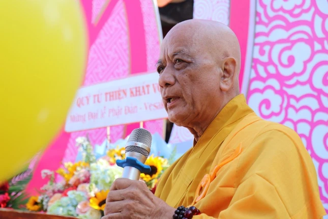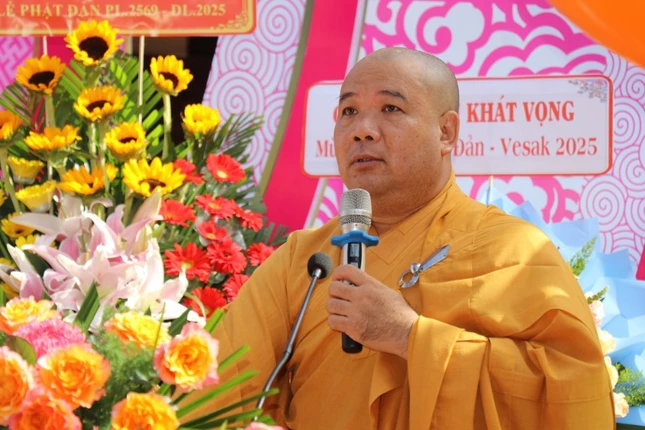 Tiếp đó, Hòa thượng Thích Nhựt Tấn, Ủy viên Thường trực Hội đồng Trị sự, Trưởng ban Trị sự GHPGVN tỉnh, Trưởng ban Tổ chức đọc Diễn văn Đại lễ Phật đản của Trưởng lão Hòa thượng Chủ tịch Hội đồng Trị sự GHPGVN.