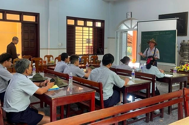 Huynh trưởng cấp Tín Như Minh - Nguyễn Đình Thi, Ủy viên Nghiên huấn Phân ban Gia đình Phật tử tỉnh hướng dẫn về phương pháp giáo dục trong Gia đình Phật tử.