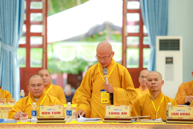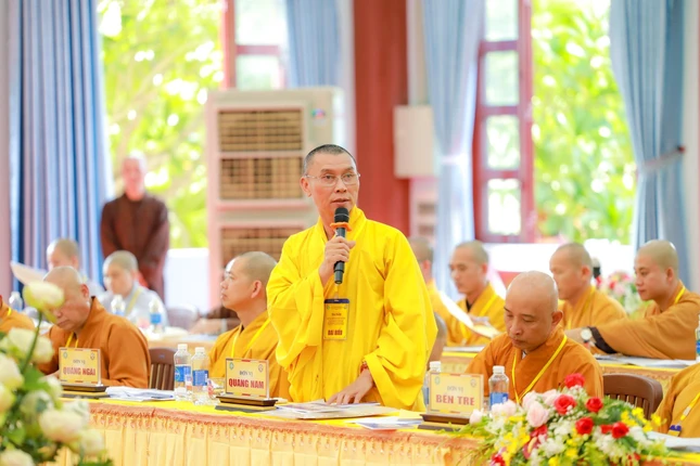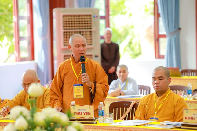 Sau báo cáo đề dẫn của Thượng tọa Thích Đồng Thành, chư tôn đức Chủ tọa đoàn đã điều phối chương trình để chư Tăng Ni tham dự trình bày tham luận, thảo luận và đóng góp ý kiến.