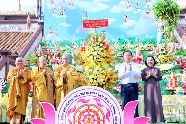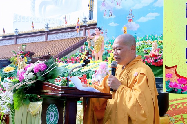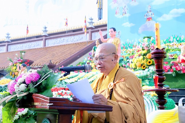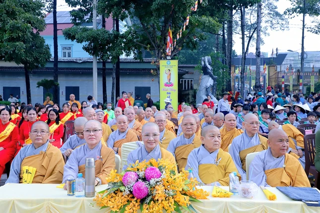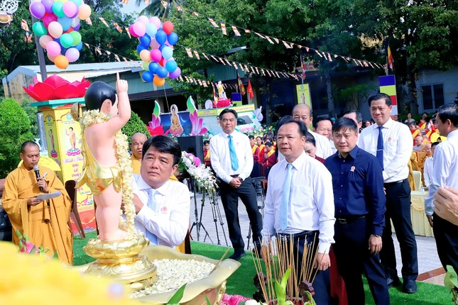 Sau 3 hồi chuông trống Bát-nhã, chư tôn đức Tăng Ni, lãnh đạo chính quyền các cấp cùng thiện nam tín nữ Phật tử đã niêm hương bạch Phật, cử hành lễ Khánh đản, lễ Mộc dục theo nghi thức truyền thống và thả bóng bay, chim bồ câu để cầu nguyện thế giới hòa bình, chúng sinh an lạc.