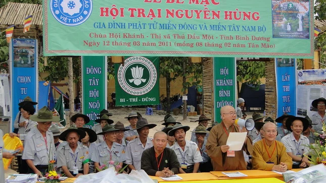 Sau phần nghi thức và giới thiệu thành phần tham dự, Huynh trưởng cấp Tấn Thị Bá Huỳnh Văn Tùng - Trại phó kiêm Thư ký trại đọc báo cáo tổng kết hoạt động của trại 3 ngày qua. Sau 3 ngày trại, hơn 500 trại sinh đến từ 12 tỉnh thành đã tham gia các hoạt động của Hội thảo Hoằng pháp toàn quốc như: tham dự lễ khai mạc, diễu hành vì môi trường, Đại lễ cầu siêu tại Nghĩa trang Liệt sĩ Bình Dương. Bên cạnh đó, các hoạt động của trại như thi đua cắm hoa, hoạt động thanh niên, thi tìm hiểu về tổ chức Gia đình Phật tử và Hội thảo các đề tài về phát triển Gia đình Phật tử nói chung, ngành thanh thiếu nói riêng trong thời kỳ hội nhập hiện nay.