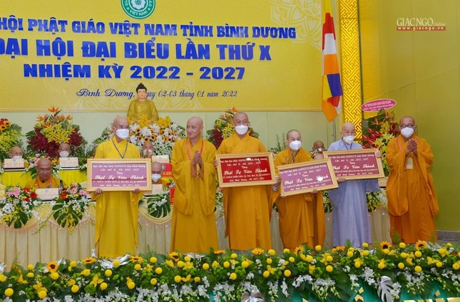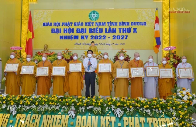 Ghi nhận những đóng góp của Giáo hội tỉnh, GHPGVN trao Bằng Tuyên dương công đức và Bằng công đức đến 1 tập thể và 31 cá nhân; UBND tỉnh Bình Dương tặng Bằng khen đến 8 tập thể và 12 cá nhân; Ủy ban MTTQVN tỉnh Bình Dương tặng Bằng khen đến 6 tập thể và 22 cá nhân.