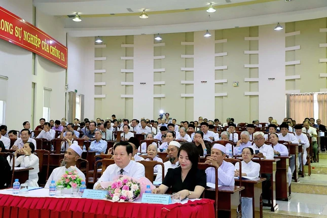 Tại hội nghị, các chức sắc, chức việc, nhà tu hành, tín đồ đã được nghe Tiến sĩ Nguyễn Thị Định, Chuyên viên cao cấp, Trưởng phòng Pháp chế - Thanh tra - Ban Tôn giáo Chính phủ phổ biến chức sắc, chức việc các tôn giáo, những điểm mới của Nghị định số 95/2023/NĐ-CP so với Nghị định 162/2017/NĐ-CP quy định chi tiết một số điều và biện pháp thi hành Luật tín ngưỡng, tôn giáo.