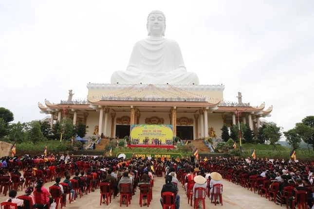 Ni sư đã chia sẻ với toàn thể hội chúng về tinh thần đoàn kết, yêu thương. Hình ảnh các dân tộc anh em được trình chiếu trên màn hình đã được lan tỏa, thể hiện sự gắn bó, đoàn kết của cộng đồng các dân tộc anh em, chúng ta cần giữ gìn bản sắc dân tộc, yêu thương, giúp đỡ lẫn nhau.