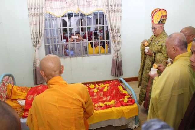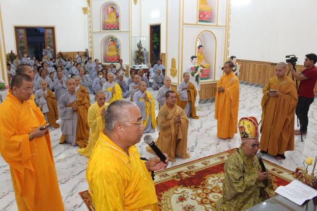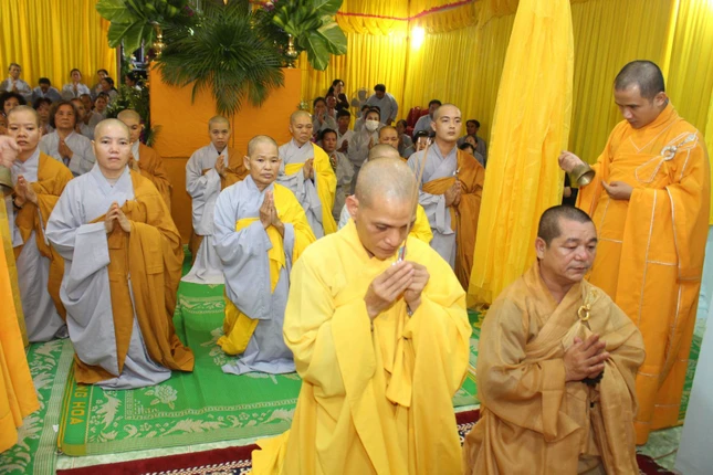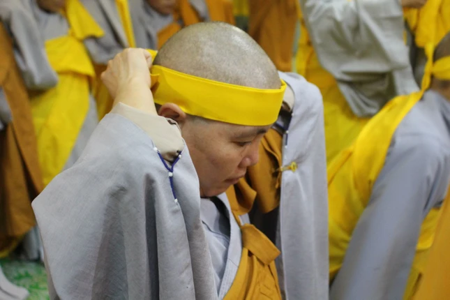 Sau lễ nhập kim quan, chư Tăng Ni, môn đồ đệ tử đã nhất tâm đảnh lễ Giác linh Trưởng lão Hòa thượng và đồng thọ tang.