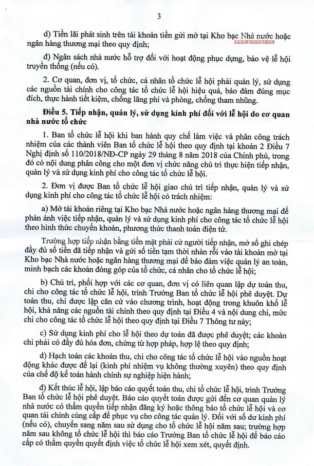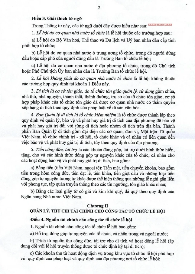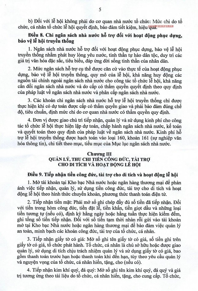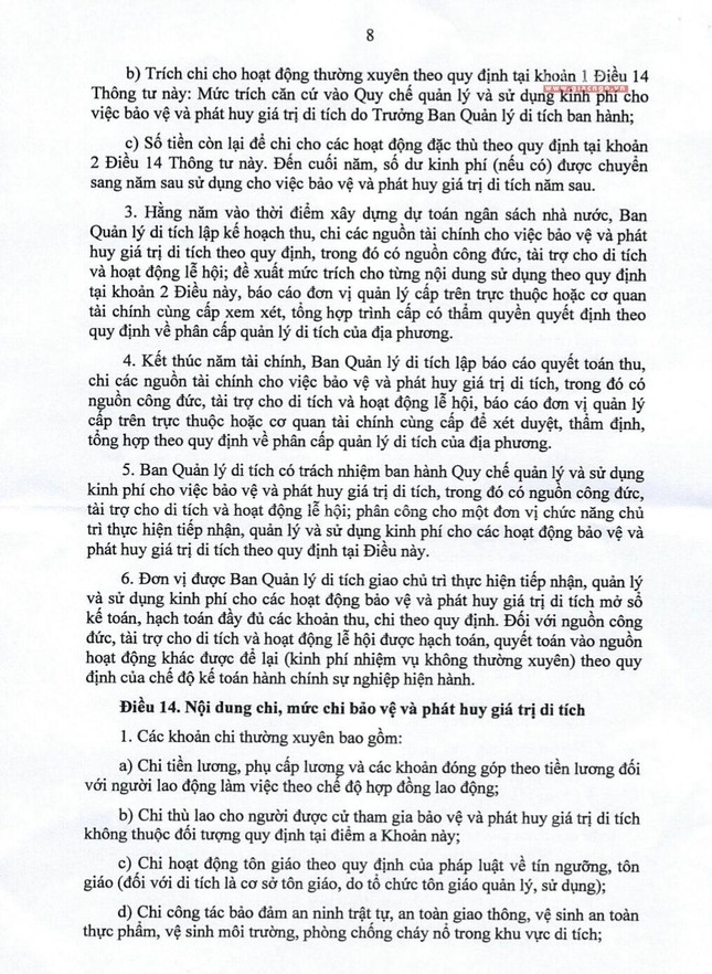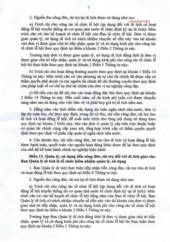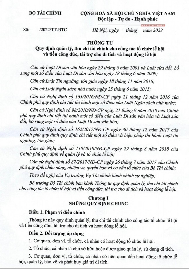 Dự thảo Thông tư hướng dẫn quản lý, thu chi đối với lễ hội và di tích