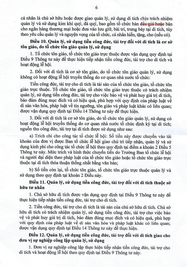 Theo tinh thần công văn này, Bộ Tài chính cũng đề nghị Hội đồng Trị sự có ý kiến đối với dự thảo Thông tư hướng dẫn quản lý, thu chi đối với lễ hội và di tích.
