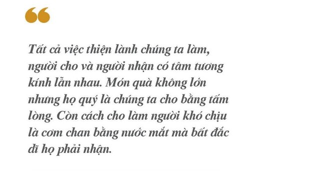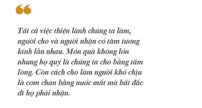 Tất cả việc thiện lành chúng ta làm, người cho và người nhận có tâm tương kính lẫn nhau. Món quà không lớn nhưng họ quý là chúng ta cho bằng tấm lòng. Còn cách cho làm người khó chịu là cơm chan bằng nước mắt mà bất đắc dĩ họ phải nhận.