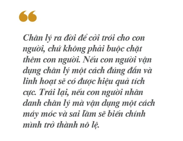 Chân lý ra đời để cởi trói cho con người, chứ không phải buộc chặt thêm con người. Nếu con người vận dụng chân lý một cách đúng đắn và linh hoạt sẽ có được hiệu quả tích cực. Trái lại, nếu con người nhân danh chân lý mà vận dụng một cách máy móc và sai lầm sẽ biến chính mình trở thành nô lệ. Song, không phải ai cũng có thể nhận thức rõ điều đó.