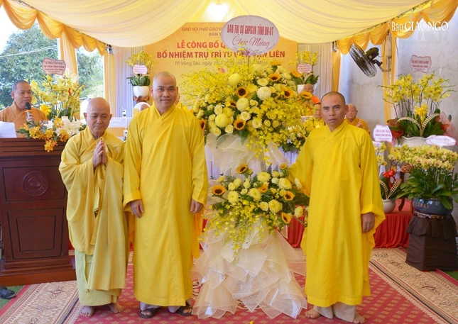 Thay mặt Ban Thường trực Ban Trị sự GHPGVN tỉnh Bà Rịa - Vũng Tàu, Hòa thượng Thích Huệ Trí trao giấy quyết định bổ nhiệm đến Hòa thượng tân trụ trì.