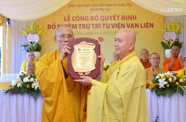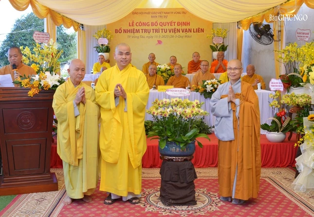 GNO - Sáng nay, 15-5 (26-3-Quý Mão), Ban Trị sự GHPGVN TP.Vũng Tàu đã công bố quyết định bổ nhiệm Hòa thượng Thích Hoằng Tri, trụ trì tu viện Vạn Liên (phường 2, TP.Vũng Tàu).