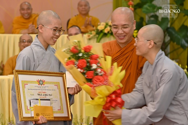 Trao chứng nhận tham gia hội thi diễn giảng đến Tăng Ni thí sinh |