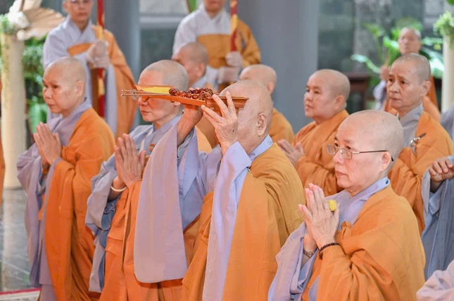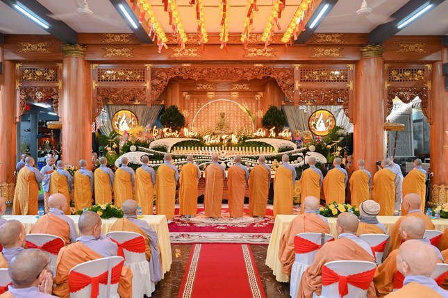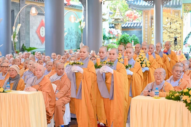 Trước đó, sáng 5-3, Phân ban Ni giới tỉnh cung thỉnh tôn tượng Đức Thánh Tổ Ni Đại Ái Đạo - Kiều Đàm Di từ Văn phòng Phân ban Ni giới tỉnh về tôn trí tại lễ đài chùa Vạn Phước, đơn vị tổ chức (Phân ban Ni giới TP.Vũng Tàu), Ban Kinh sư cử hành cung tiến Giác linh chư vị Trưởng lão Ni tiền bối hữu công đã viên tịch qua các thời kỳ; Ban Tổ chức thực hiện trang nghiêm nghi thức thắp nến tri ân.