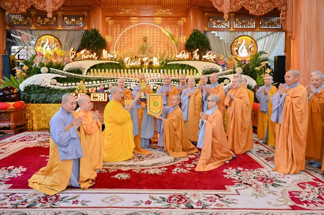 Cờ luân lưu được trao lại cho đơn vị Phân ban Ni giới TP.Phú Mỹ, là đơn vị sẽ tổ chức Lễ tưởng niệm Đức Thánh Tổ Ni Đại Ái Đạo vào năm 2026.