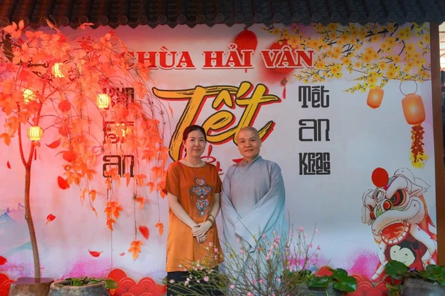 Bên cạnh việc nhận những lộc xuân của chùa, Sư cô Huệ Trí cũng trực tiếp viết trao tặng các bức liễn thư pháp Tết từ 8 giờ đến 10 giờ sáng cho các Phật tử, người dân đến chùa đến hết ngày mùng 3 Tết.