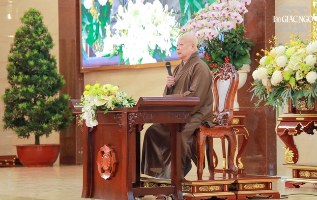 Hòa thượng Thích Lệ Trang, Phó Chủ tịch Hội đồng Trị sự, Trưởng ban Nghi lễ T.Ư, Trưởng ban Trị sự GHPGVN TP.HCM chủ trì buổi sinh hoạt; cùng với sự tham dự của chư tôn đức Ban Trị sự và gần 1.000 Tăng Ni tại TP.HCM về tu học.
