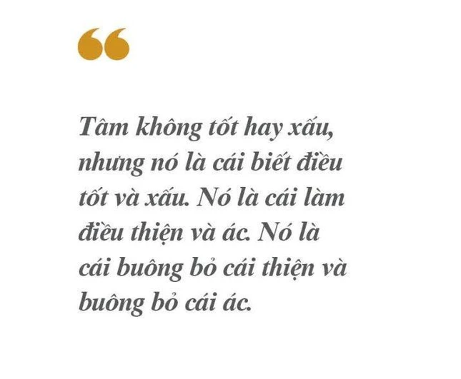 - Tâm không tốt hay xấu, nhưng nó là cái biết điều tốt và xấu. Nó là cái làm điều thiện và ác. Nó là cái buông bỏ cái thiện và buông bỏ cái ác.