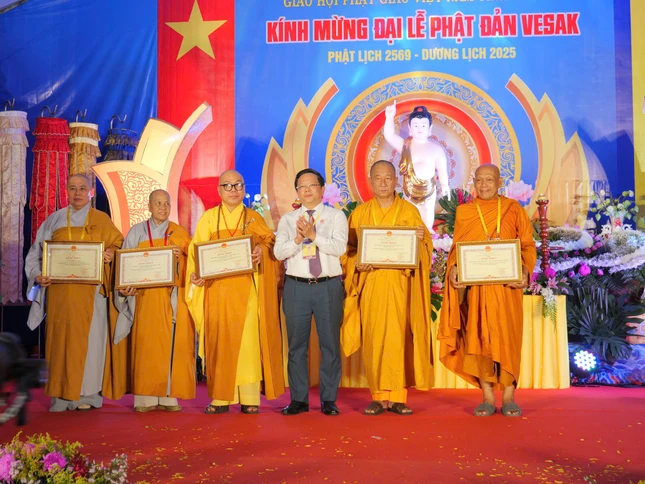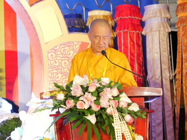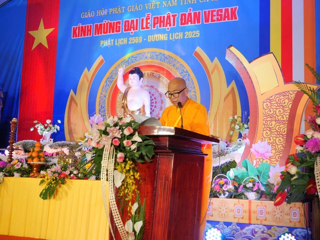 Trong không khí trang nghiêm, hội chúng đã lắng nghe Hòa thượng Thạch Hà cung tuyên Thông điệp Phật đản Phật lịch 2569 của Đức Pháp chủ GHPGVN; Thượng tọa Thích Phước Lợi tuyên đọc Diễn văn Phật đản của Trưởng lão Hòa thượng Chủ tịch Hội đồng Trị sự.