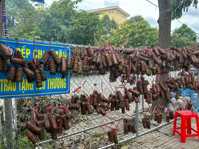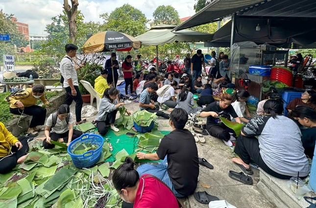 Hàng trăm Phật tử trẻ, tình nguyện viên và người dân nơi đây, với tấm lòng nhiệt thành chung tay gói hàng ngàn đòn bánh tét gửi đến đồng bào miền Bắc yêu thương. Những chiếc bánh không chỉ là lương thực cứu trợ mà còn là biểu tượng của tình người, của sự gắn kết Bắc - Nam trong những lúc gian khó nhất.