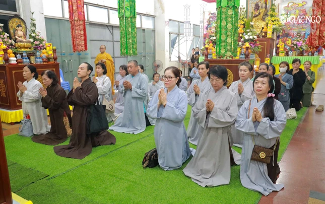 Chứng minh đàn tràng có Thượng tọa Thích Đạt Đức, Ủy viên Thường trực Ban Trị sự GHPGVN TP.HCM; chư Tăng Ni, quý Phật tử các đạo tràng trên địa bàn phường về tham dự.