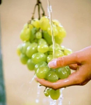 Cách rửa đúng: Hãy rửa nho dưới vòi nước, dùng tay hoặc vải bông thật mềm lau nhẹ quanh quả để khử sạch bụi và vi trùng. Không nên cho nho vào chậu và khoắng mạnh. Làm như vậy sẽ làm nho dập nát và mất đi sự tươi ngon.