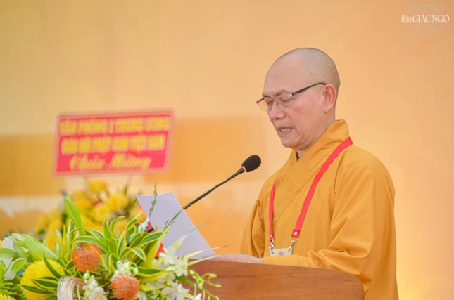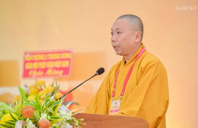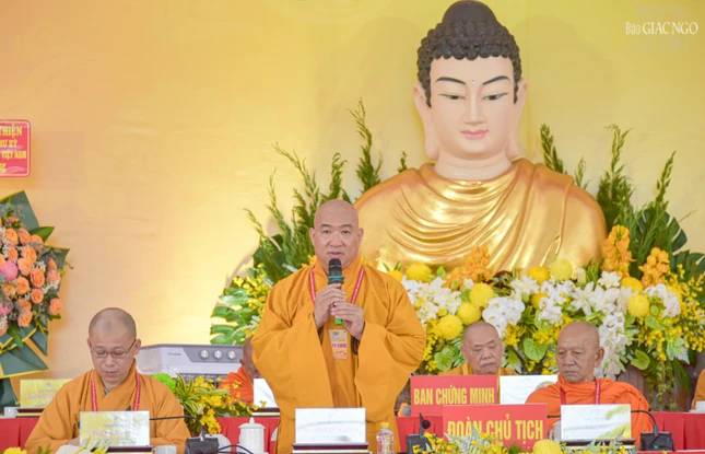 | Thượng tọa Thích Bình Tâm báo cáo tóm tắt kết quả của các nội dung quan trọng tại ngày thứ nhất Đại hội, nhiệm kỳ 2026-2031 |