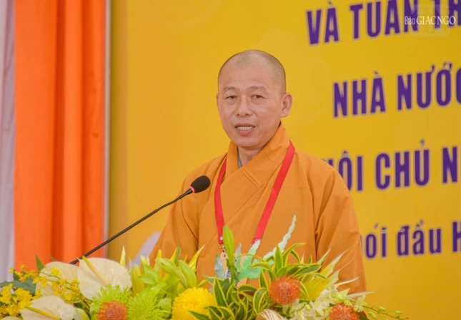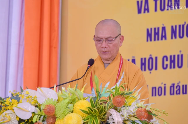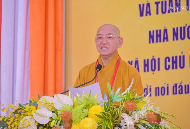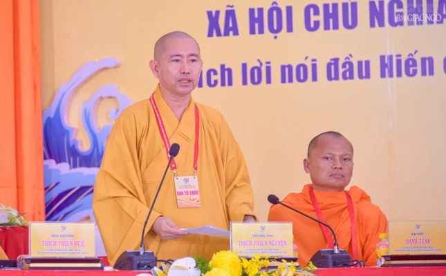 Thay mặt Ban Tổ chức, Hòa thượng Đào Như phát biểu chào mừng đại biểu; cho biết, Ban Tổ chức Đại hội tiến hành phiên thứ nhất để thực hiện công tác, nhiệm vụ trọng tâm, dự thảo toàn bộ nội dung báo cáo công tác Phật sự nhiệm kỳ 2022-2027 (giai đoạn 2022- 2026), báo cáo tham luận để định hướng mục tiêu, nhiệm vụ, giải pháp cho hoạt động Phật sự của Ban Trị sự nhiệm kỳ 2026-2031;