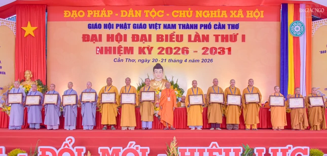 Dịp này, Trung ương Giáo hội tặng Bằng tuyên dương công đức cho 1 tập thể, 88 cá nhân; Ban Trị sự GHPGVN TP.Cần Thơ tặng Bằng tuyên dương công đức đến 32 tập thể, 80 cá nhân là tự viện, Tăng Ni, Phật tử tiêu biểu có nhiều đóng góp tích cực cho các công tác Phật sự của TP.Cần Thơ trong thời gian qua.