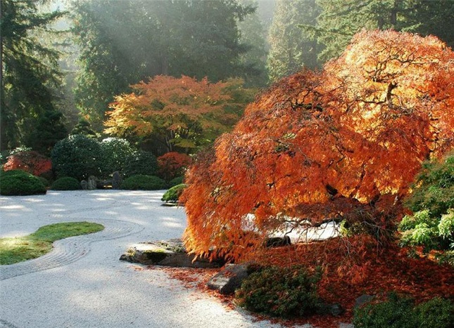 Giữa thành phố ồn ào và hối hả, những công viên với hồ nước và cây xanh tạo nên một thế giới đối ngược. Tới thăm các công viên Nhật Bản vào mùa thu, bạn sẽ được ngắm cảnh sắc quyến rũ của lá phong đỏ nổi bật giữa cỏ cây và ngôi đền rêu phong cổ kính. Ảnh trên Visboo.