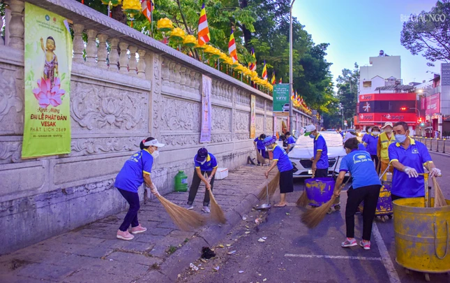 GNO - Không chỉ góp phần làm sạch những con đường, góc phố xung quanh Việt Nam Quốc Tự mà các hoạt động của Câu lạc bộ Hành Trình Xanh - chùa Liên Hoa (Q.11) còn truyền đi thông điệp về tinh thần cống hiến vì cộng đồng, ý thức bảo vệ môi trường sống nhân mùa Phật đản Phật lịch 2569.